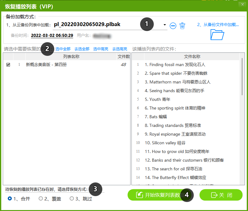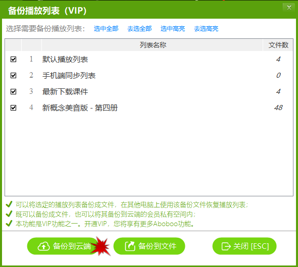 备份播放列表到云端,或者备份到播放列表文件(.plbak):