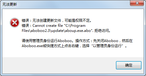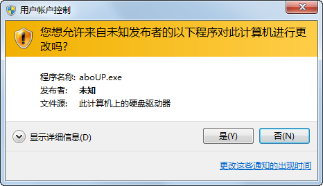 如果Windows用户账户控制(UAC)采用了高安全级别,更新器(aboUP.exe)必须取得管理员权限才能继续:
