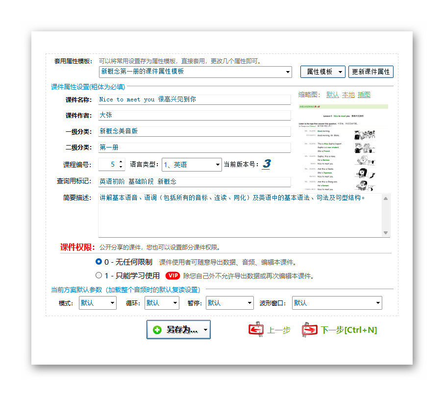 简短、描述性强的文字,合理清晰的课件属性,易通过管理员的审核,相反,胡乱填写的属性,将给管理员的工作带来困扰。
