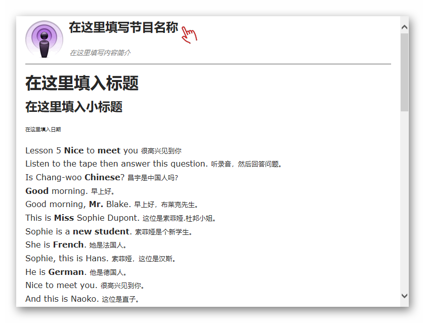 全文内容必须绑定音频,否则上传课件无法通过管理员的审核。使用模板渲染的全文已自动绑定音频,不需要再做绑定。
