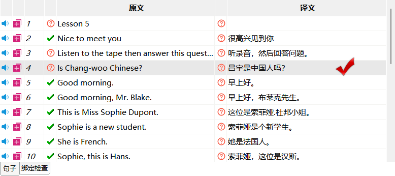 把匹配的内容绑定到音频后,用全文模式播放时有点读效果(点击句子自动播放此句音频)。