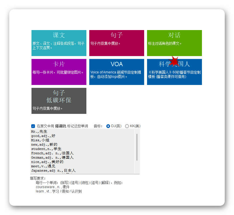正确绑定了原文的英文类课件将由服务器生成跟读评分数据,您可以在PC端 本地 云端私有课件 下载学习,手机端可以点击 首页 私有课件 下载学习。