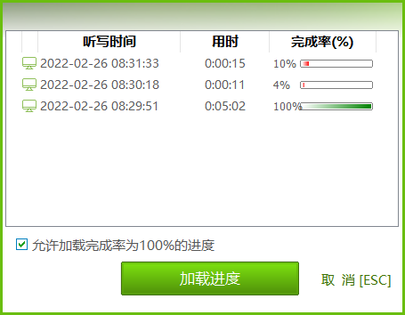 如果听写未完成,也可以先保存,下次接着听写该文件时,可以选择加载上次的存档进度: