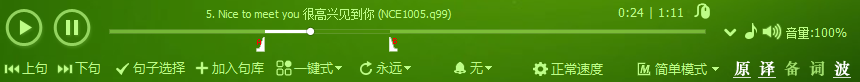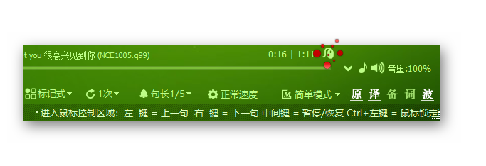 听力水平一般: 用标记式,正在播放的句子就是复读区间