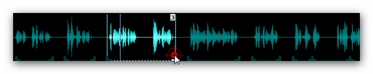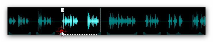 在主波形上断句时,波形面板动态提醒您正在进行的操作: